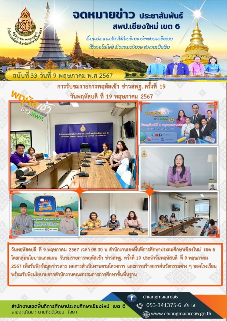 กลุ่มนโยบายและแผน รับชมรายการพฤหัสเช้า ข่าวสพฐ. ครั้งที่ 19 วันพฤหัสบดี ที่ 9 พฤษภาคม 2567