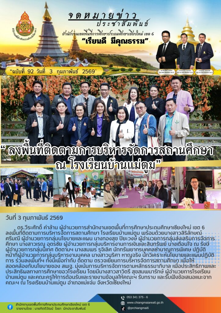 ลงพื้นที่ติดตามการบริหารจัดการสถานศึกษา ณ โรงเรียนบ้านแม่ตูม