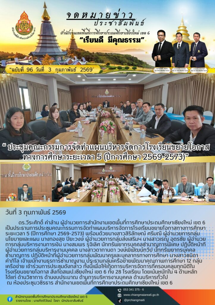 ประชุมคณะกรรมการจัดทำแผนบริหารจัดการดรงเรียนขยายโอกาสทางการศึกษาระยะเวลา 5 ปี (ปีการศึกษา 2569 – 2573)