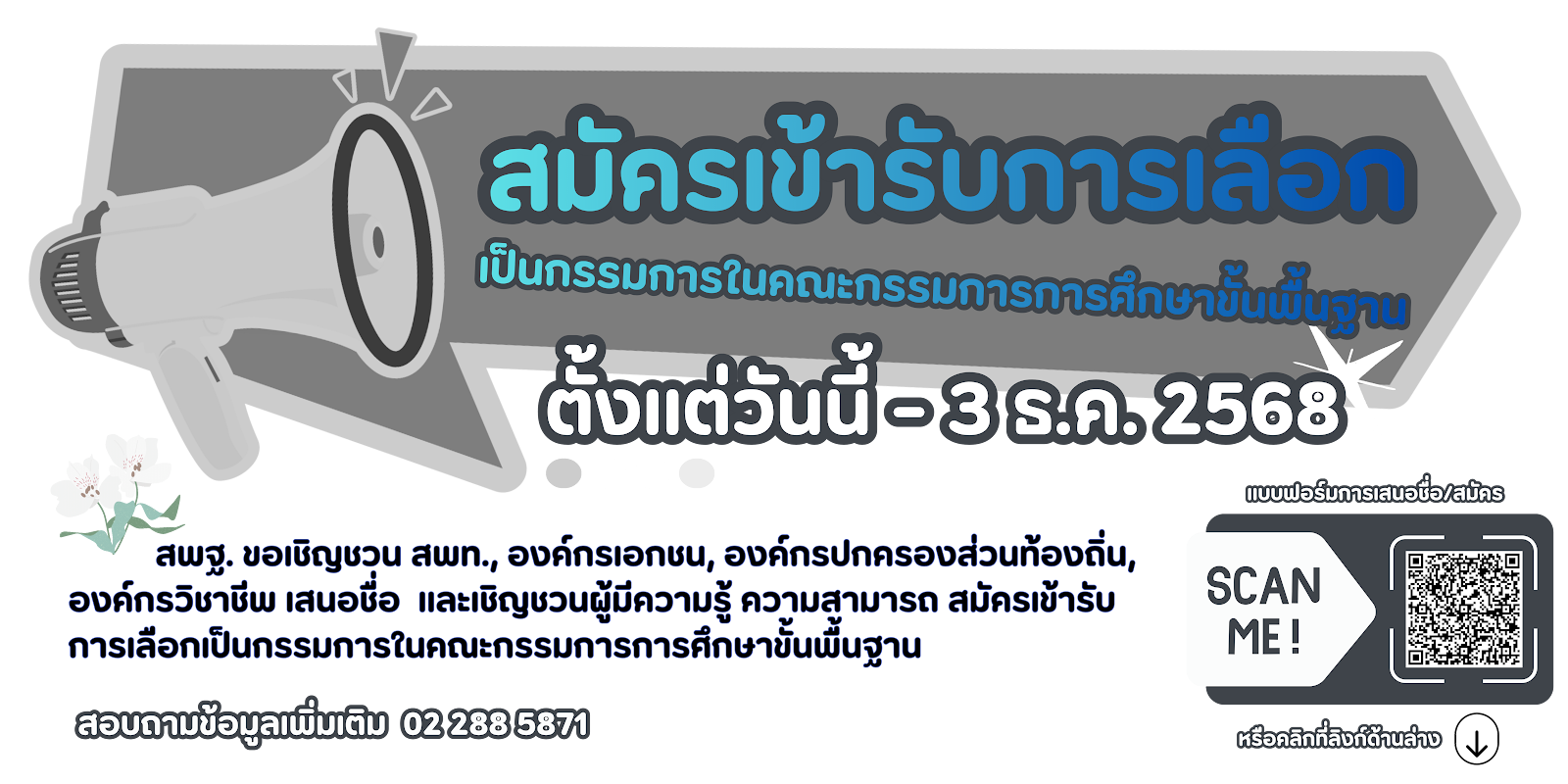 ประชาสัมพันธ์การสมัครเข้ารับการคัดเลือกเป็นกรรมการในคณะกรรมการการศึกษาขั้นพื้นฐาน