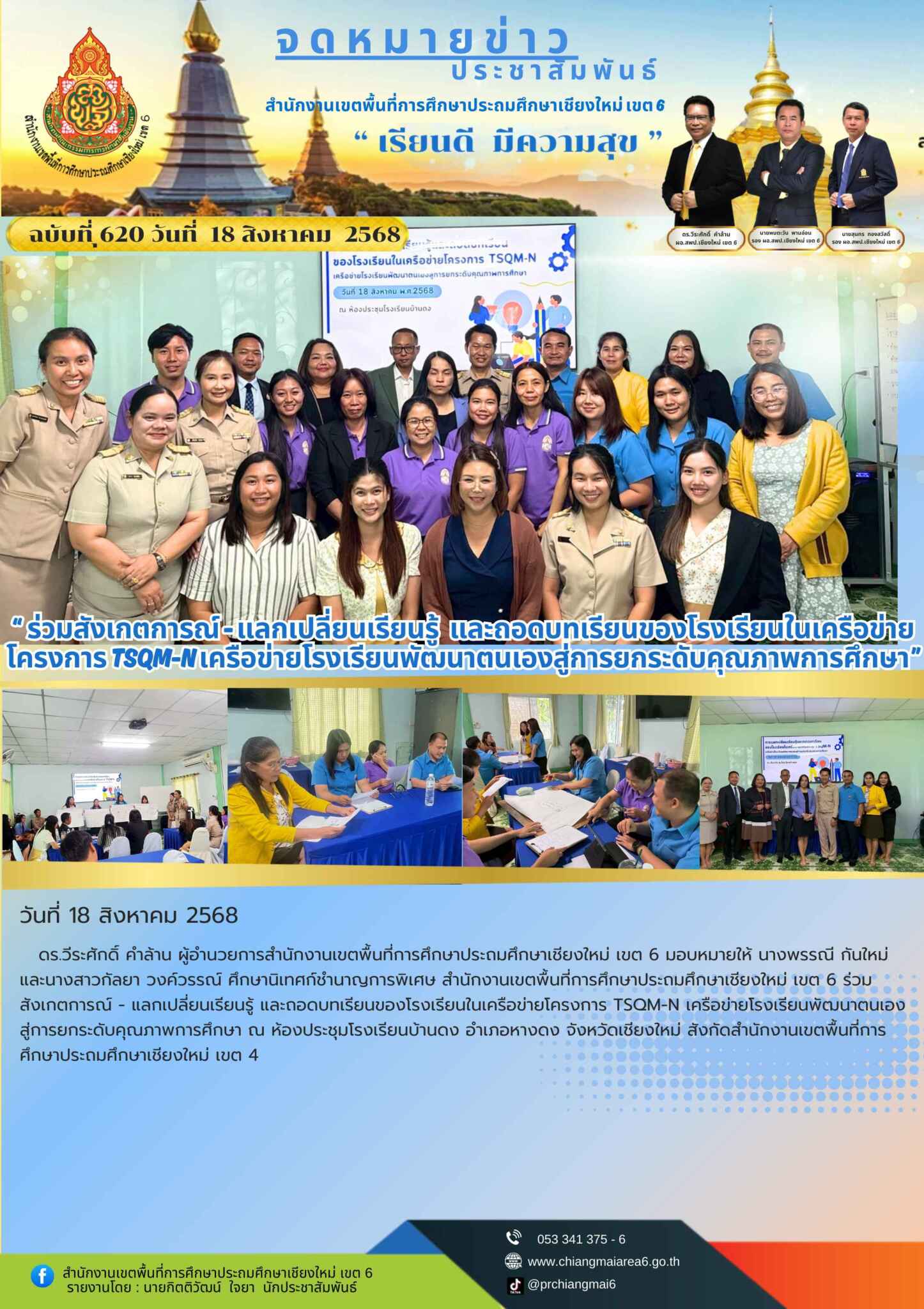 “สพป.เชียงใหม่ เขต 6 ร่วมสังเกตการณ์ – แลกเปลี่ยนเรียนรู้ และถอดบทเรียนของโรงเรียนในเครือข่ายโครงการ TSQM-N เครือข่ายโรงเรียนพัฒนาตนเองสู่การยกระดับคุณภาพการศึกษา