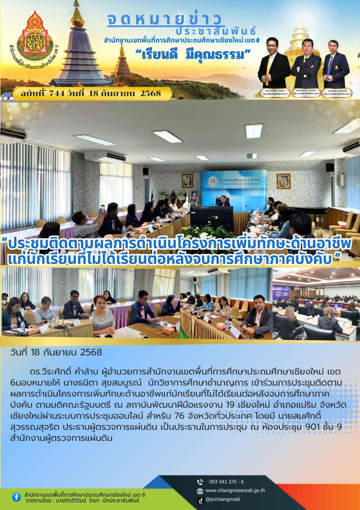 วันที่ 18 กันยายน 2568 ดร.วีระศักดิ์ คำล้าน ผู้อำนวยการสำนักงานเขตพื้นที่การศึกษาประถมศึกษาเชียงใหม่ เขต 6มอบหมายให้ นางธนิตา สุขสมบูรณ์