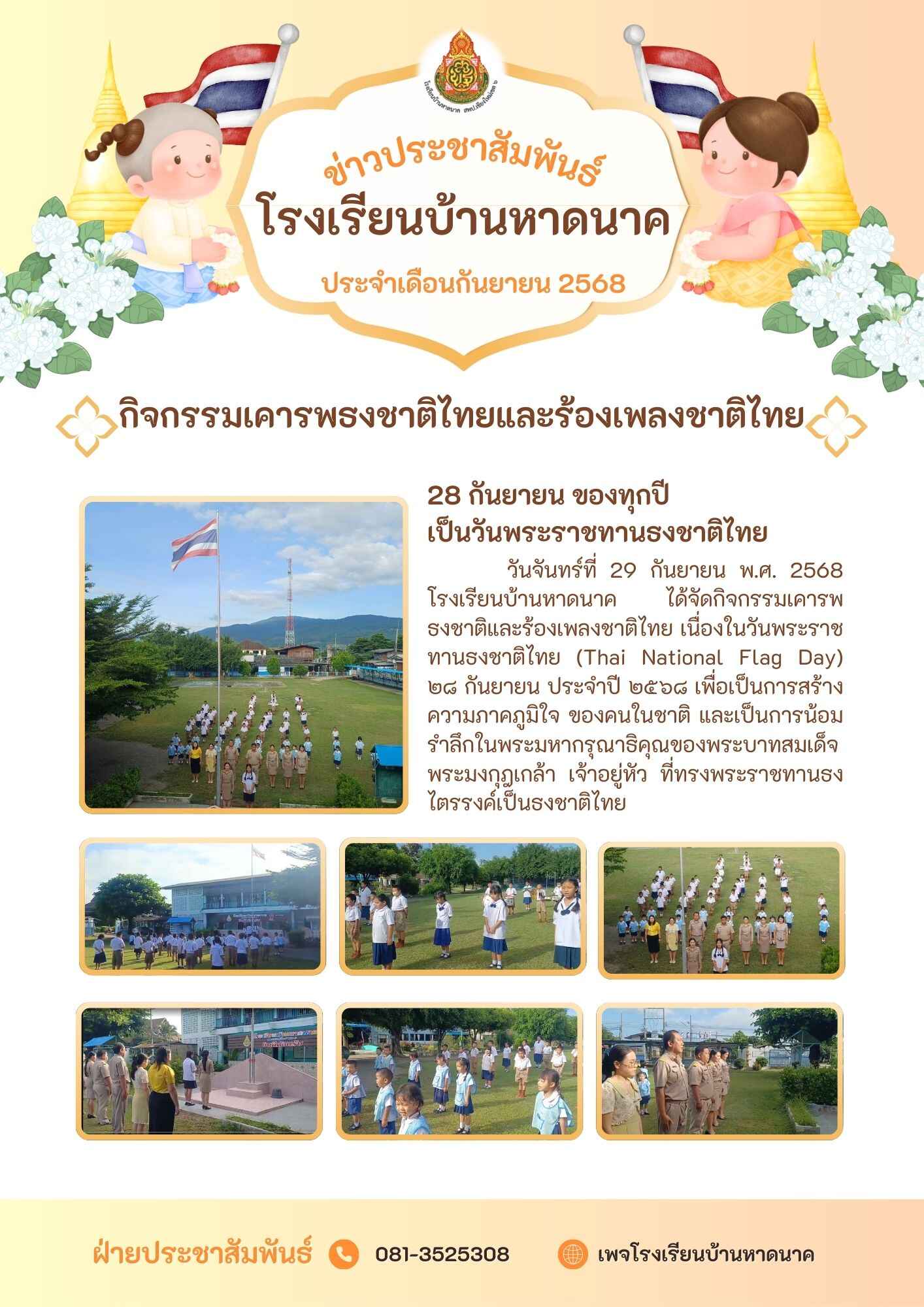 กิจกรรมเคารพธงชาติไทยและร้องเพลงชาติไทย โรงเรียนบ้านหาดนาค เนื่องในวันพระราชทานธงชาติไทย (Thai National Flag Day) 28 กันยายน ประจำปี 2568