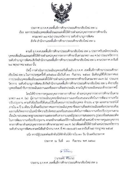 “สพป.เชียงใหม่ เขต 6 ประกาศผลการประเมินเลื่อนตำแหน่ง”