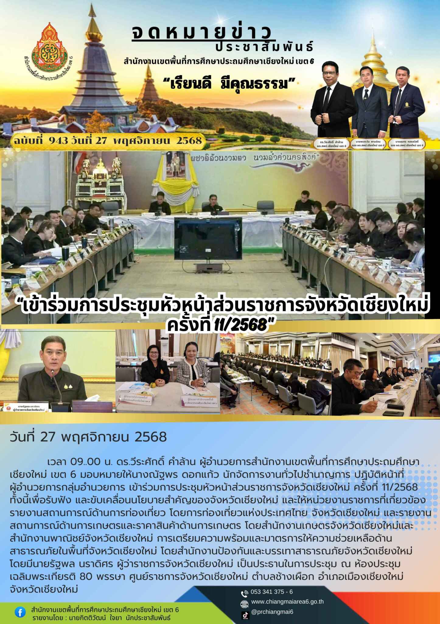 “สพป.เชียงใหม่ เขต 6 เข้าร่วมการประชุมหัวหน้าส่วนราชการจังหวัดเชียงใหม่ ครั้งที่ 11/2568”