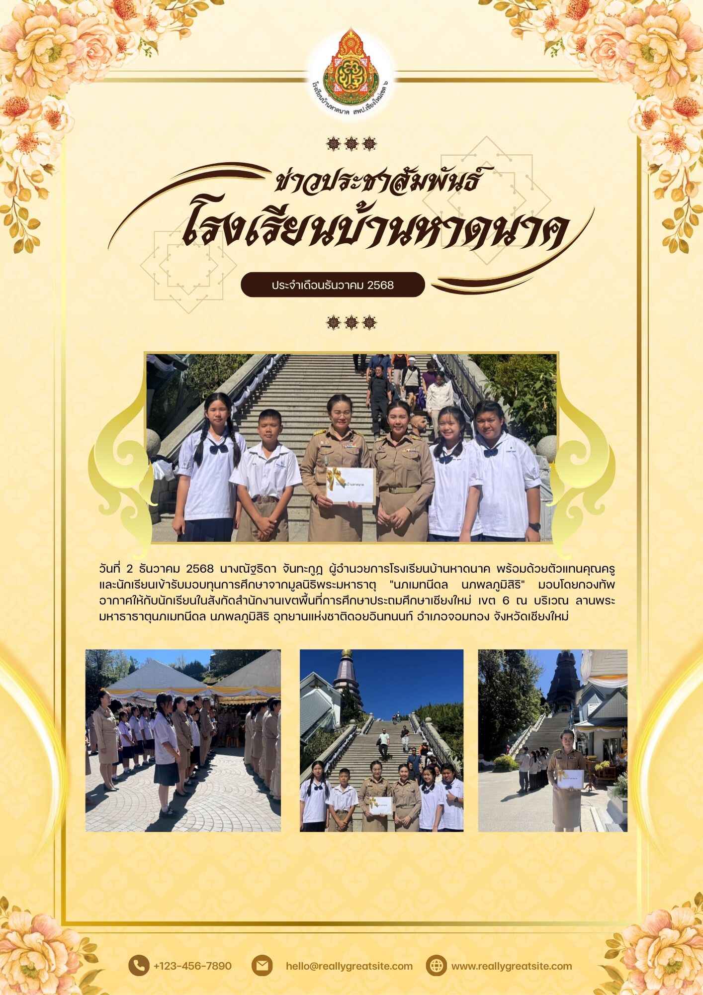 โรงเรียนบ้านหาดนาค รับทุนการศึกษาจากมูลนิธิพระมหาธาตุ “นภเมทนีดล นภพลภูมิสิริ” อุทยานแห่งชาติดอยอินทนนท์