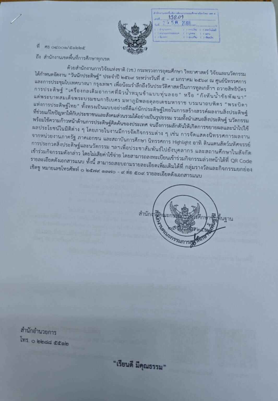 ข่าวประชาสัมพันธ์ “ประชาสัมพันธ์เชิญชวนเข้าร่วมกิจกรรมและเยี่ยมชมงาน “วันนักประดิษฐ์” ประจำปี 2569″ กิตติวัฒน์ ใจยา ธันวาคม 26, 2025 1 minute read รายละเอียดตามเอกสานแนบพร้อมนี้ 51225Download Post navigation Previous: “ประชาสัมพันธ์ โครงการฝึกอบรมเชิงปฏิบัติการหลักสูตร AI Smart Work: และหลักสูตร เทคนิคการใช้งาน Canva Advanced :Next: “ประชาสัมพันธ์ ขอเชิญร่วมสมทบกองทุน น้อมเกล้าฯ ถวายพระบาทสมเด็จพระเจ้าอยู่หัว” เพื่อพระราชทานทุนการศึกษาแก่เยาวชนด้อยโอกาส ตามโครงการสืบสวนพระราชปณิธาน” Related Stories ข่าวประชาสัมพันธ์ “ประชาสัมพันธ์ การประกวดออกแบบโล่และตราสัญลักษณ์การบริหารจัดการเรื่องร้องทุกข์โดดเด่น” กิตติวัฒน์ ใจยา มีนาคม 20, 2026 ข่าวประชาสัมพันธ์ “ประชาสัมพันธ์การถวายบังคมพระบรมศพสมเด็จพระนางเจ้าสิริกิติ์ พระบรมราชินีนาถ พระบรมราชชนนีพันปีหลวง” กิตติวัฒน์ ใจยา มีนาคม 20, 2026 ข่าวประชาสัมพันธ์ “ประชาสัมพันธ์การแข่งขันทักษะทางไซเบอร์ NCSA AL CTF 2026” กิตติวัฒน์ ใจยา มีนาคม 16, 2026