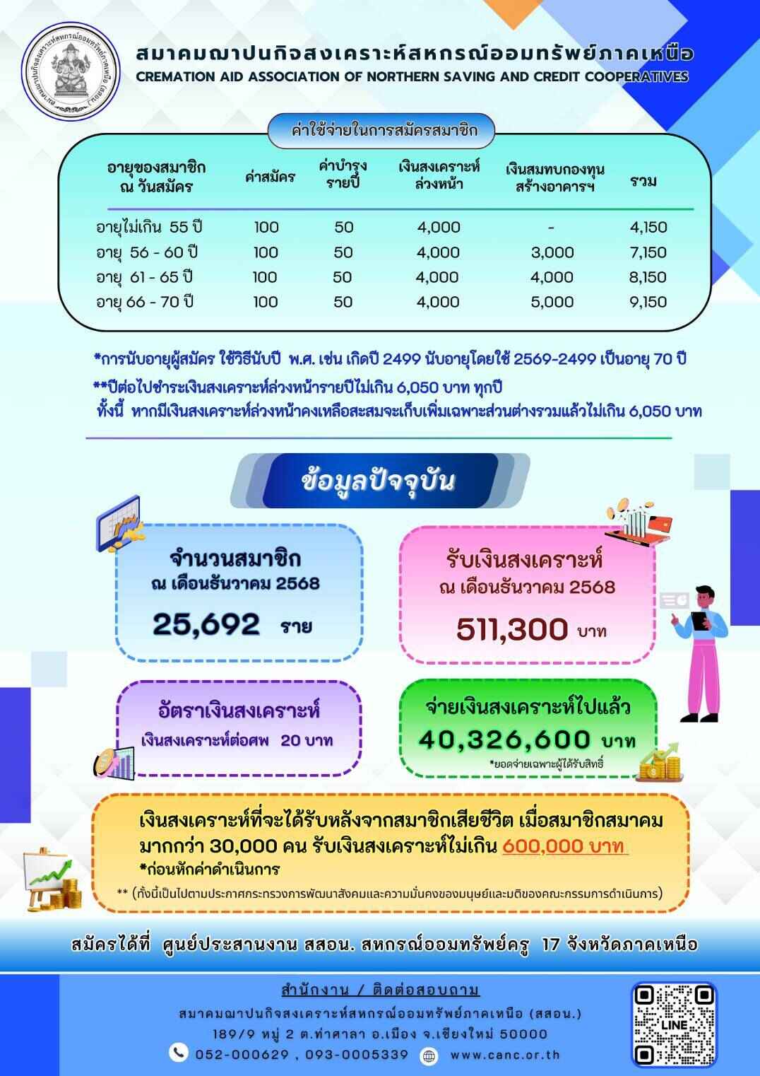 ประกาศด่วน!! สมาคมฌาปนกิจสงเคราะห์สหกรณ์ออมทรัพย์ภาคเหนือ เปิดรับสมัครกรณีพิเศษ อายุไม่เกิน 70 ปี