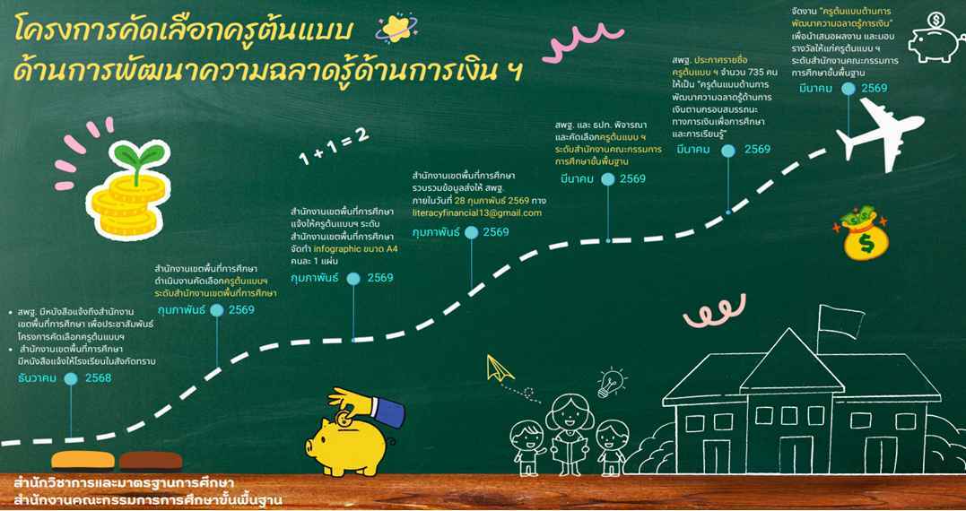ประชาสัมพันธ์การส่งผลงานเพื่อคัดเลือกครูต้นแบบด้านการพัฒนาความฉลาดรู้การเงินตามกรอบสมรรถนะทางการเงินเพื่อการศึกษาและการเรียนรู้ของธนาคารแห่งประเทศไทย ระดับเขตพื้นที่การศึกษา สำนักงานเขตพื้นที่การศึกษาประถมศึกษาเชียงใหม่ เขต 6