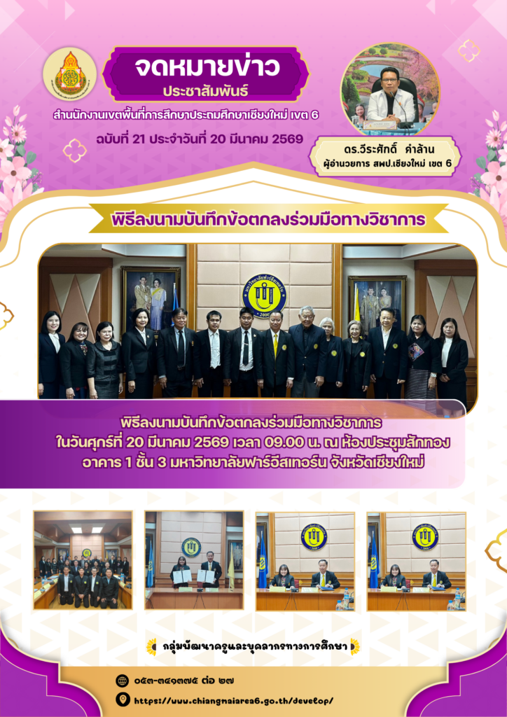 ในวันศุกร์ที่ 20 มีนาคม 2569 เวลา 09.00 น. ณ ห้องประชุมสักทอง อาคาร 1 ชั้น 3 มหาวิทยาลัยฟาร์อีสเทอร์น จังหวัดเชียงใหม่